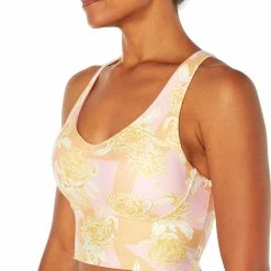Discount 🎉 Cycle House By Marika Pink & Orange Abstract Floral Tess Longline Racerback Sports Bra 🌟