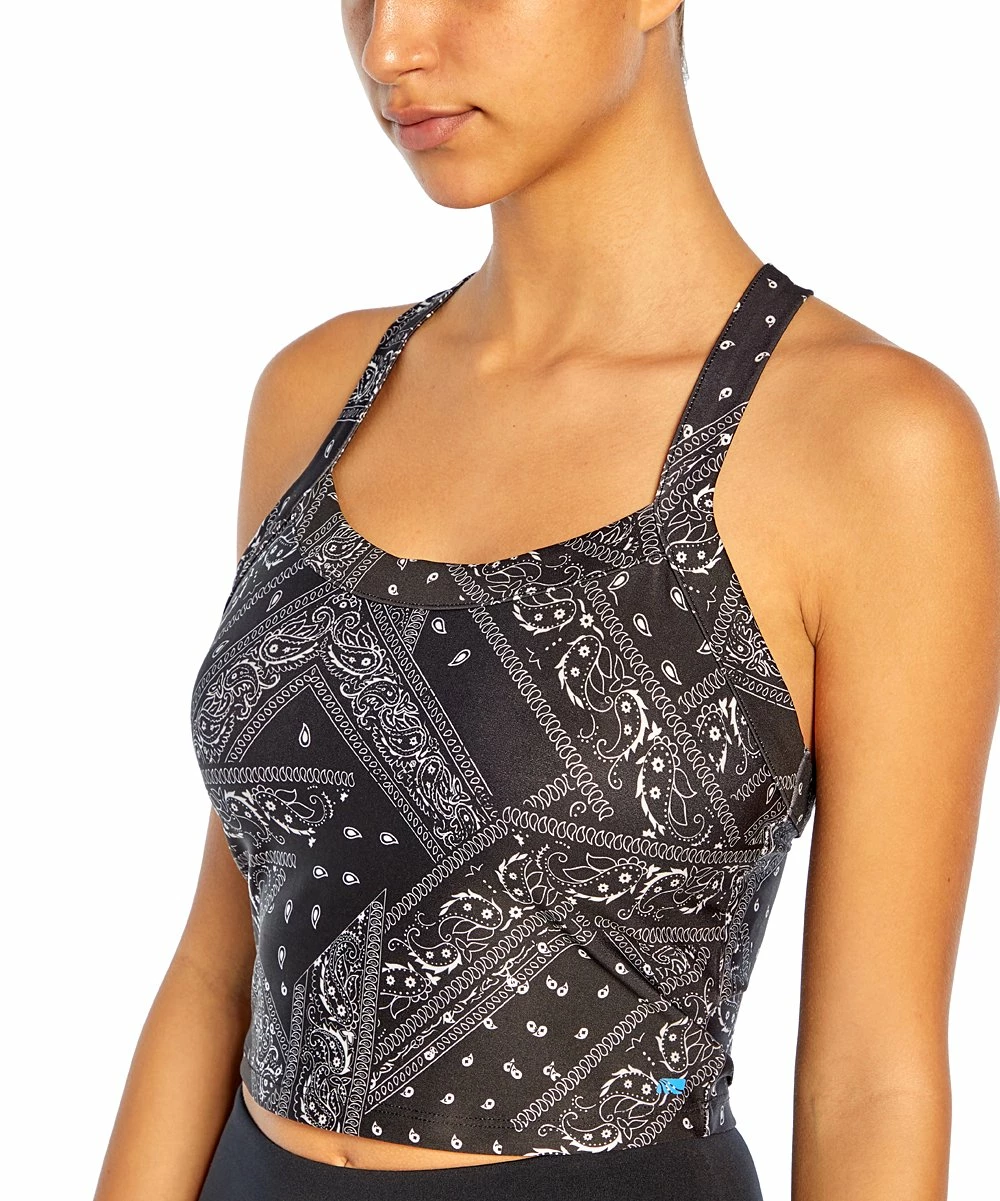 Look and feel great while you work up a sweat in this stylish cropped tank top that has just the right amount of stretch to give you a comfortable fit.