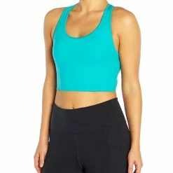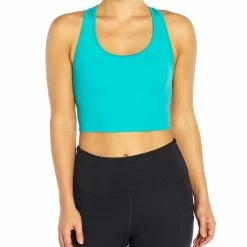 Enjoy comfortable support during workouts with this stretch-enhanced sports bra boasting a longline racerback design with a breathable mesh back.