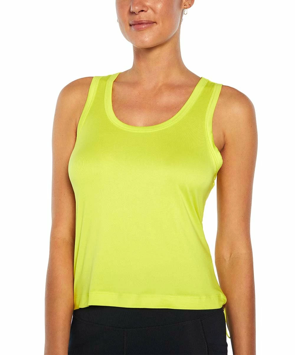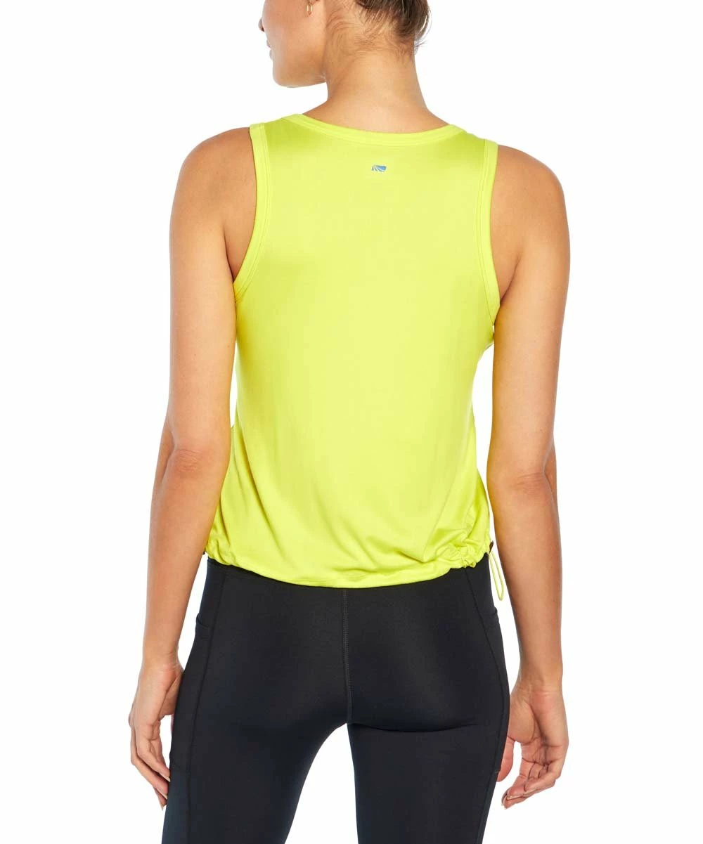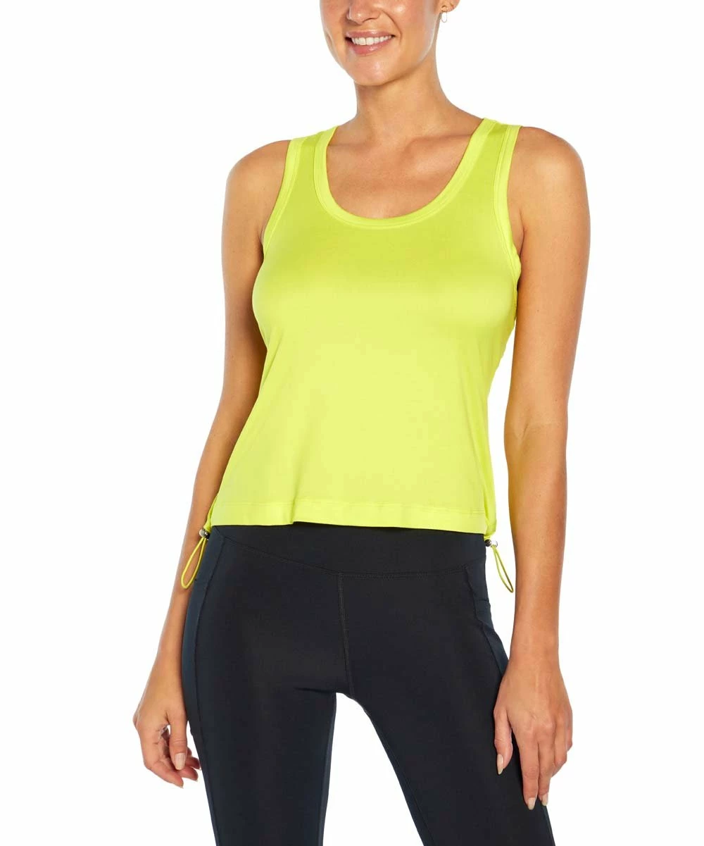 Conquer tough workouts with style-right confidence when you don this solid-hued tank featuring moisture-wicking, stretchy fabric and a bungee-cord hem that provides an adjustable fit.