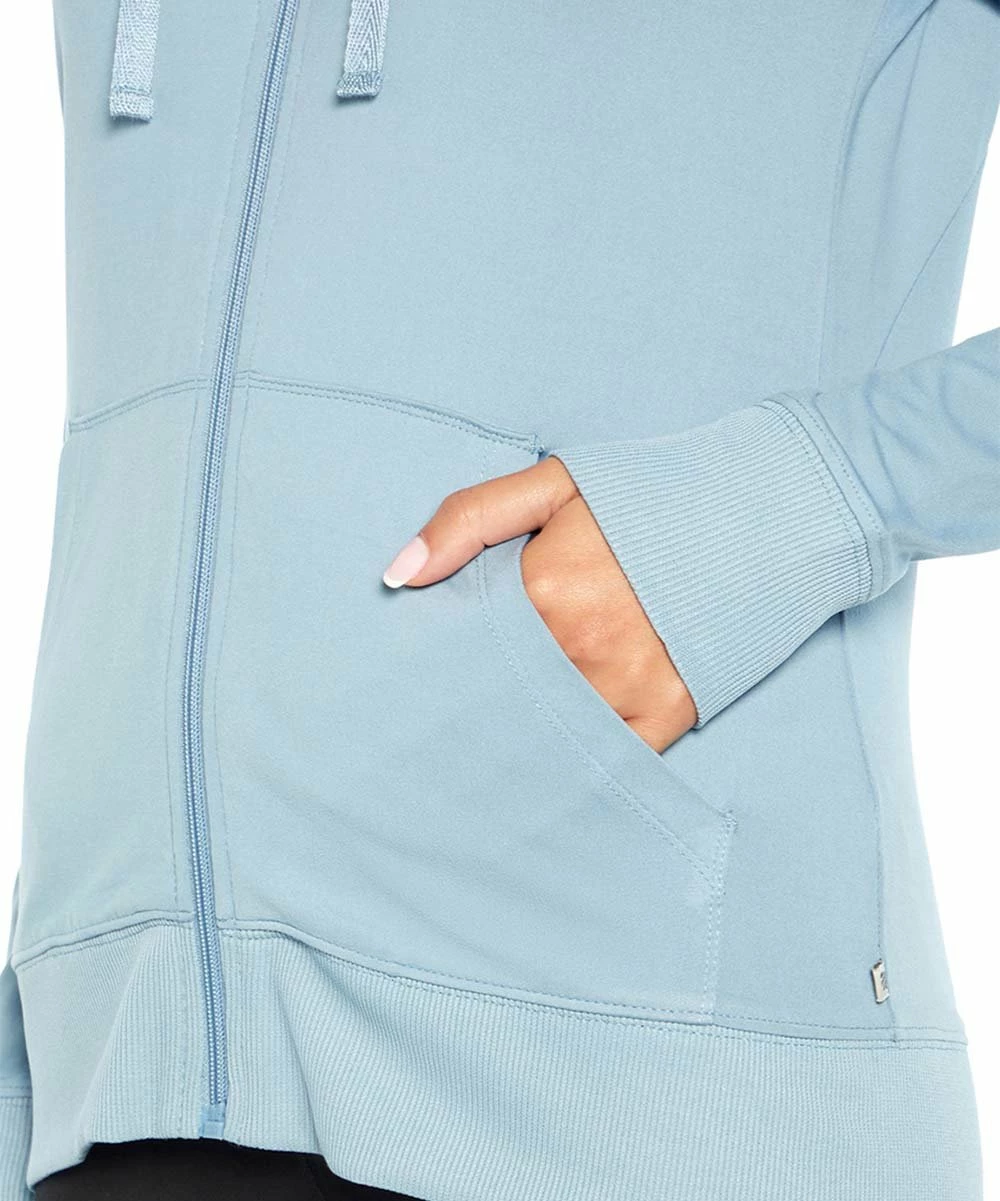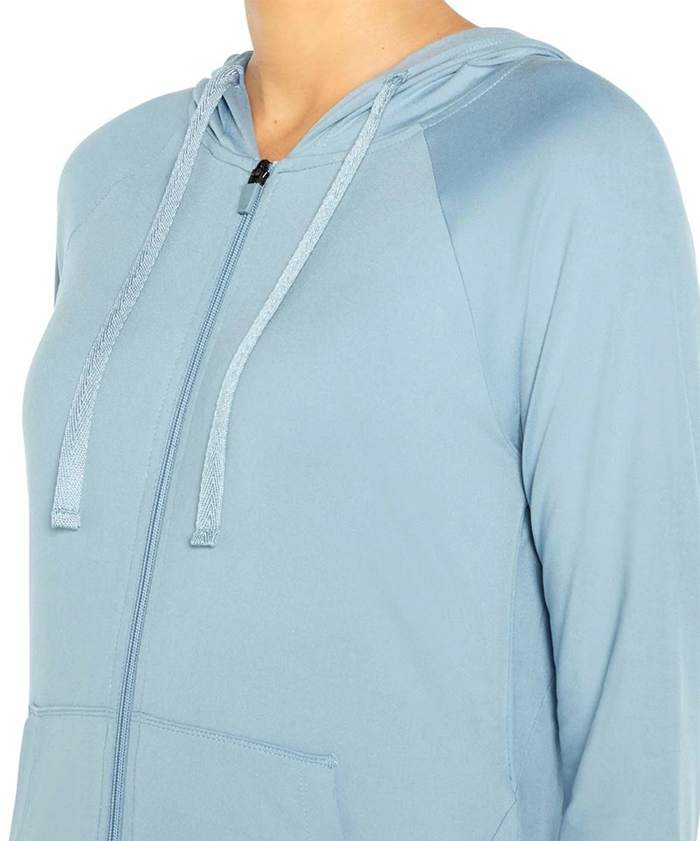 Keep warm during your workout with this zip-up jacket featuring a roomy hood to lock in warmth.