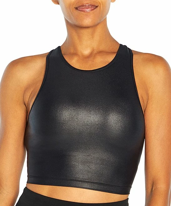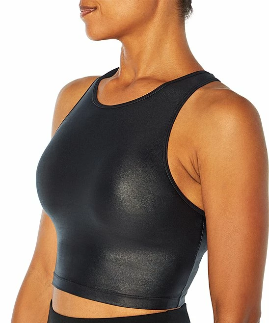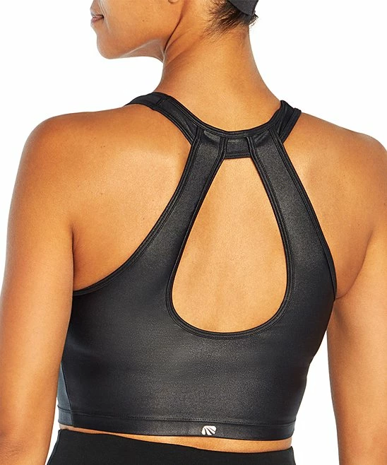 Enjoy comfortable support with this stylish stretch-enhanced sports bra with added length, a high neckline and cutout detail on the back.