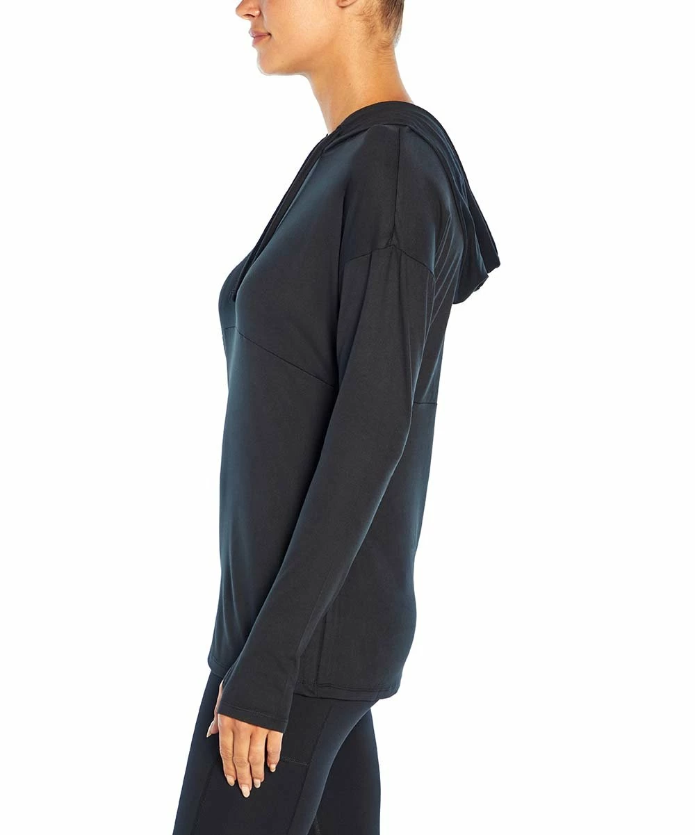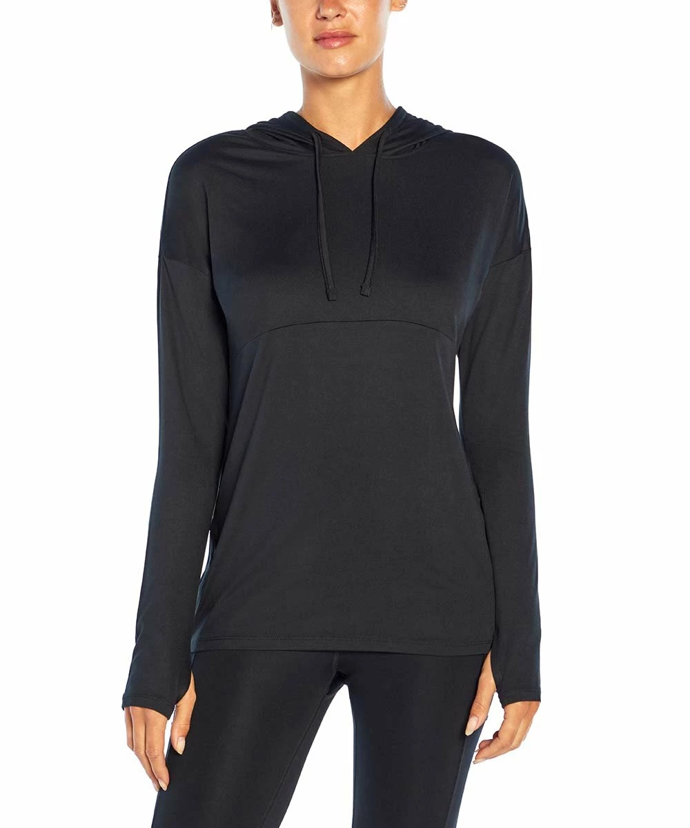 Simple and sporty, this stretch-infused hoodie is a versatile addition for your closet that you can wear for workouts, lounging or casual days.