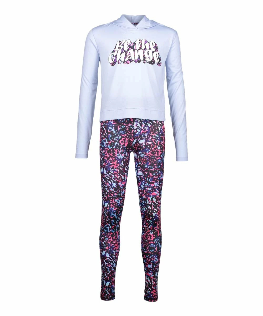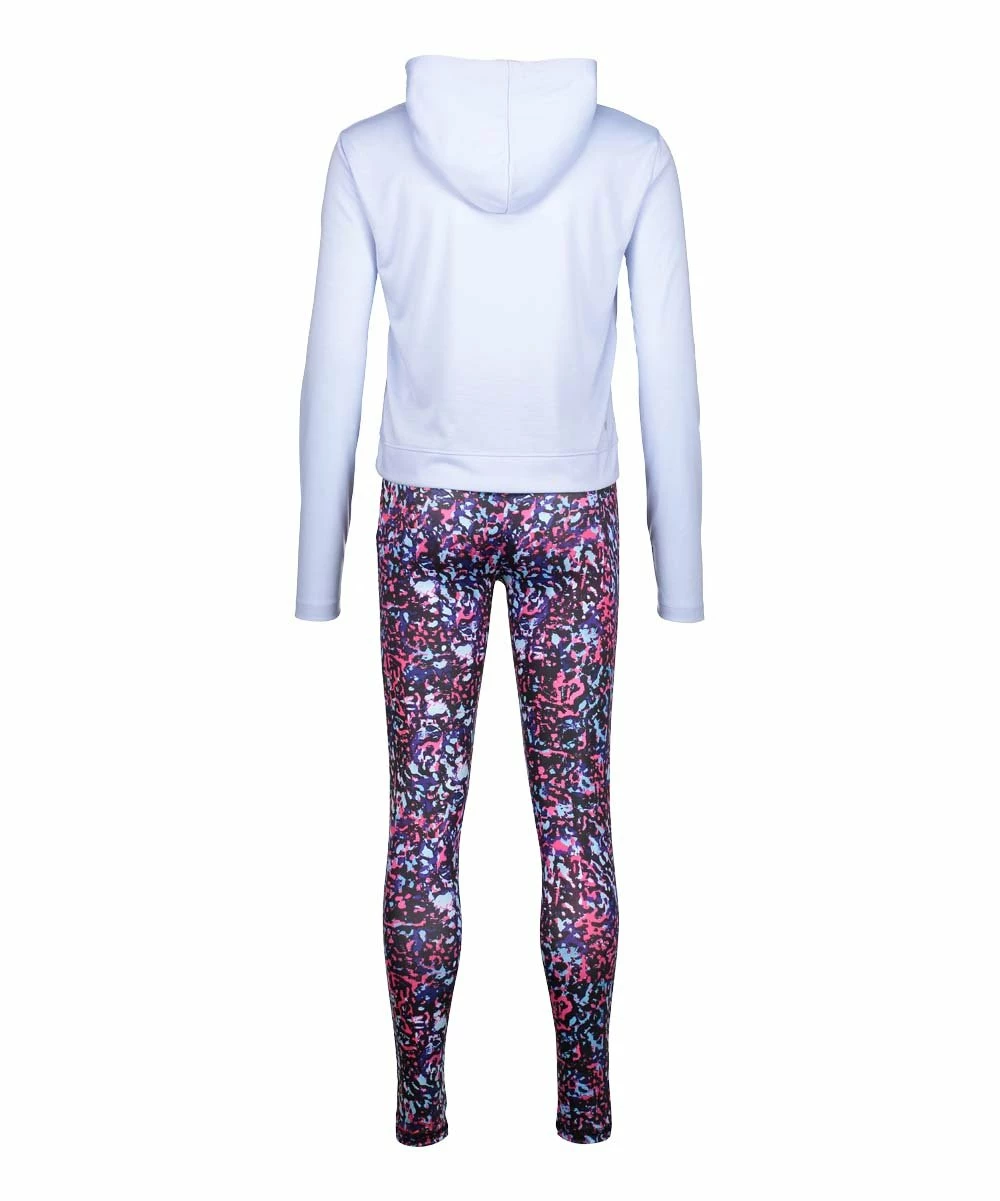 - Includes blue graphic hoodie and purple abstract leggings (two pieces total)