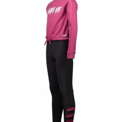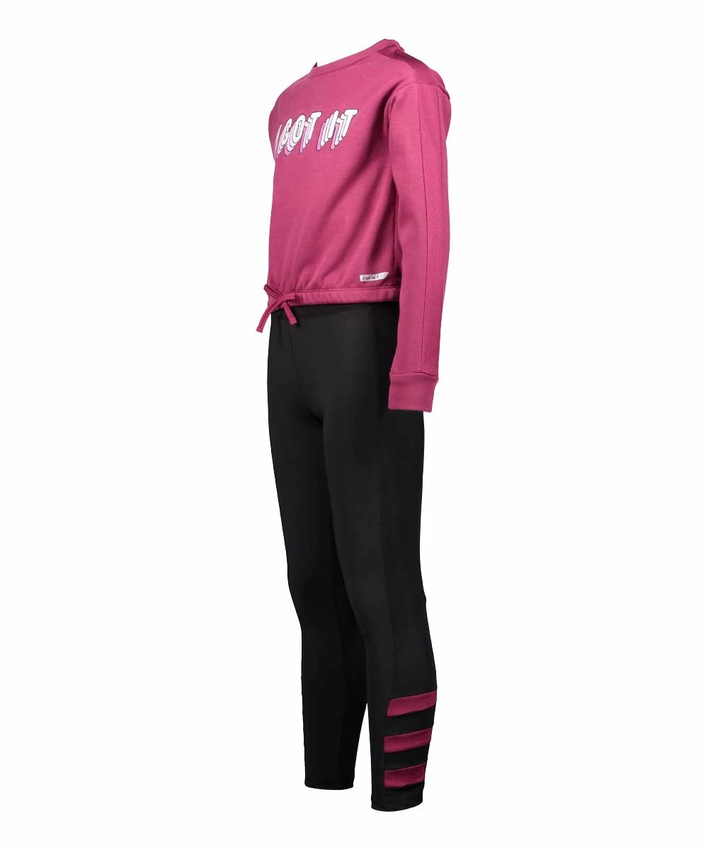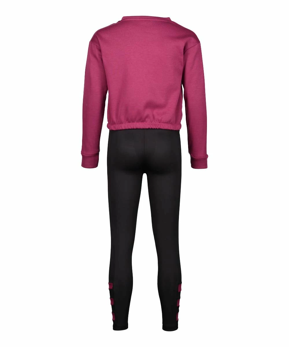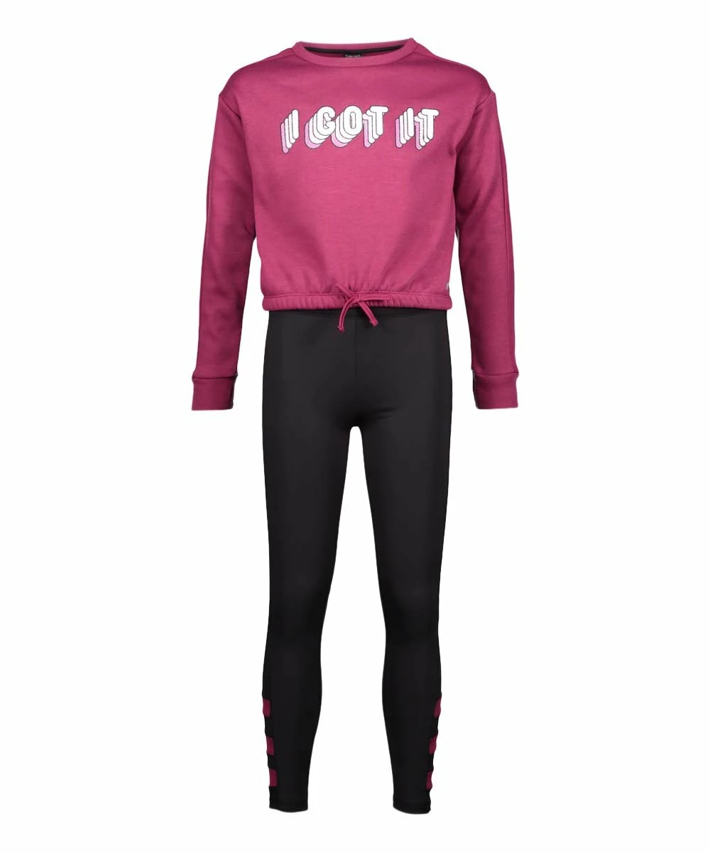 - Includes cranberry graphic sweatshirt and black leggings (two pieces total)