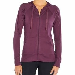Keep warm during your workout with this zip-up jacket featuring a roomy hood to lock in warmth.