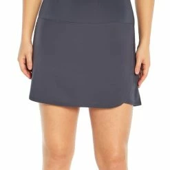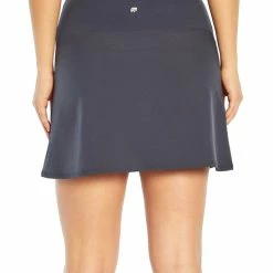 This solid-color skort is made with athletic dry-wik fabric with a wide waistband with tummy control and plenty of stretch.