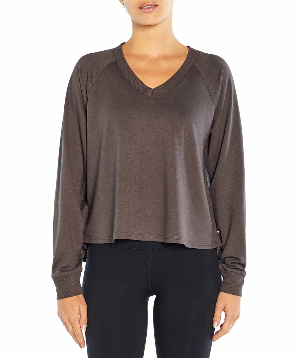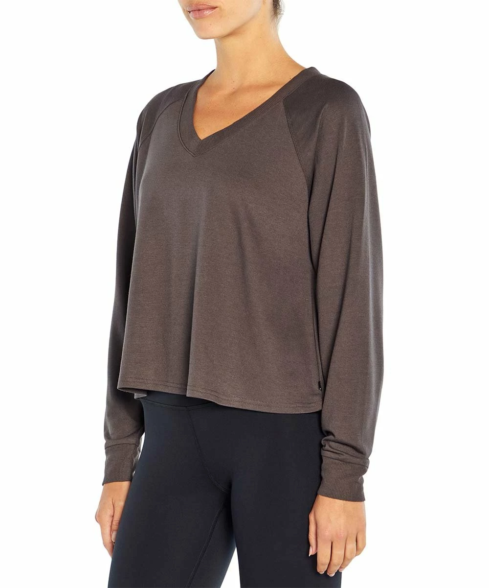 Layer up in comfort with this stretchy hi-low pullover with a relaxed boxy fit and ribbed bands.