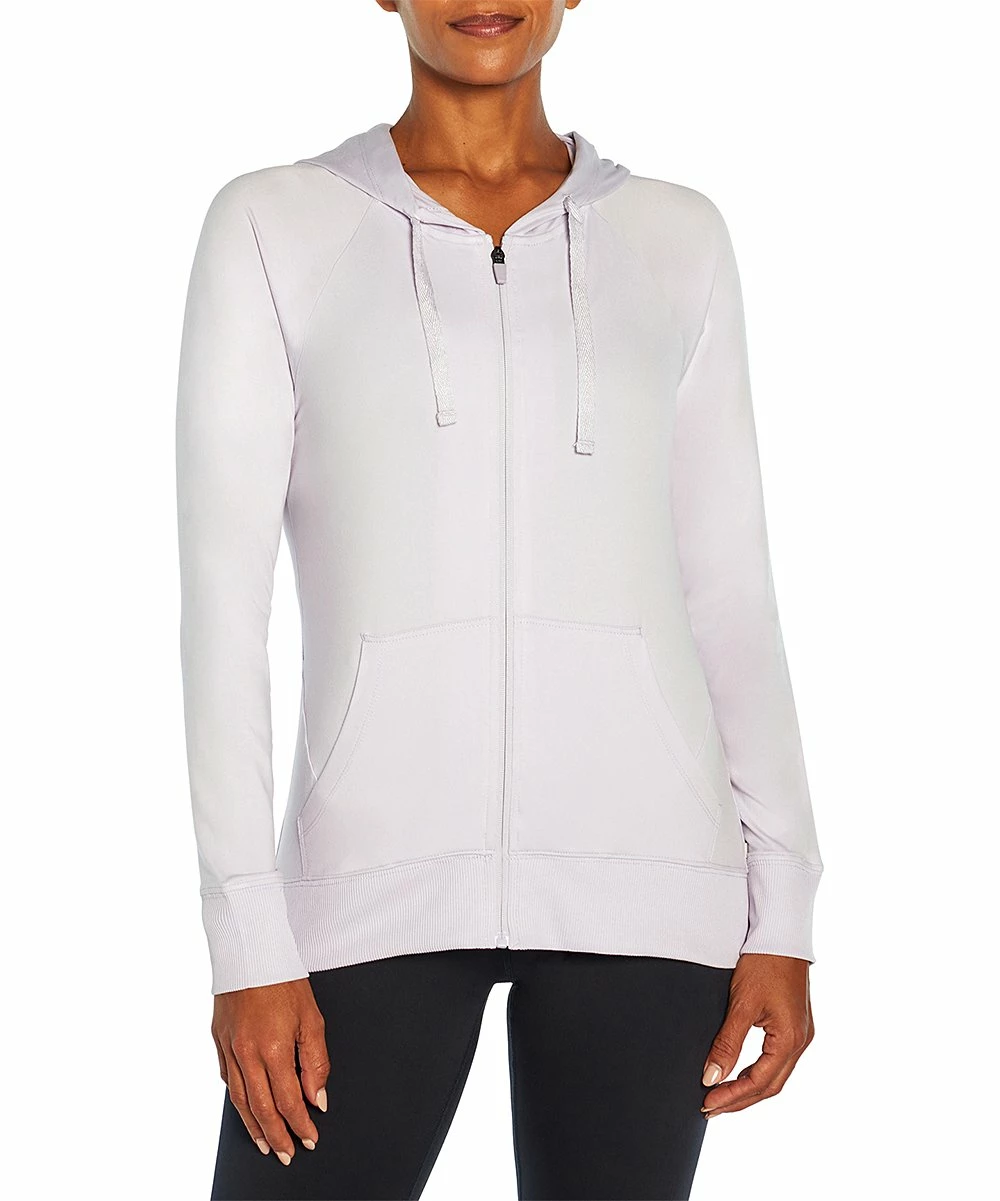 Keep it casual with this relaxed zip-up hoodie sporting a ribbed hem and cuff while front pockets ensure convenience.